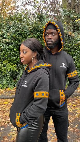 - Ankara Stitched fabric on hood, left arm & left side of pocket
